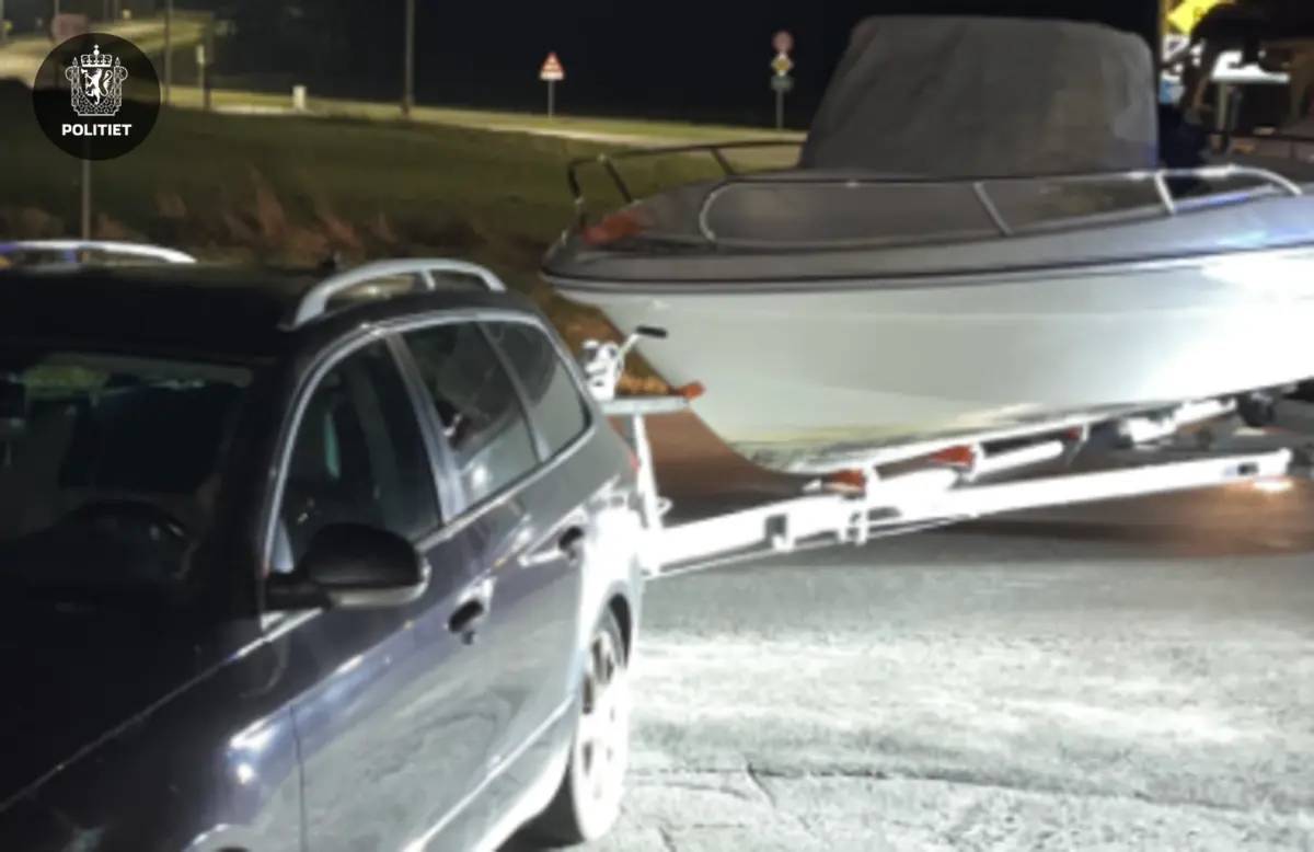 Politiet følgde natt til fredag etter ein bil med ein skjergardsjeep på slep. Sjåføren måtte stanse tidlegare enn han kanskje hadde planlagt.